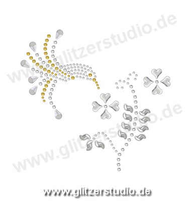 Sehr schöne Motive mit leuchtenden Strass-Steinen und Aluformen. Die Strassstein Motive verfügen über eine Klebebeschichtung, welche bei einer Temperatur von ca. 120°C schmilzt und mit dem darunterliegenden Stoff waschfest verbindet.