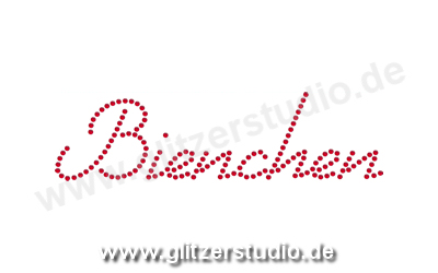 Glitzerschrift mit leuchtenden Strass. Die Strassstein Motive verfügen über eine Klebebeschichtung, welche bei einer Temperatur von ca. 120°C schmilzt und mit dem darunterliegenden Stoff waschfest verbindet.